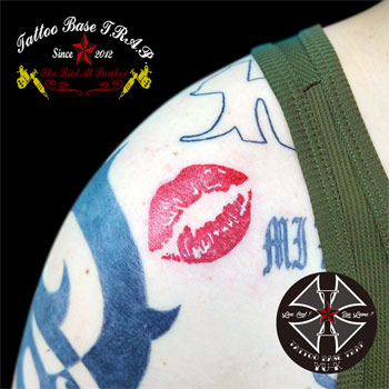 続いて男性の肩に《キスマークのタトゥー》