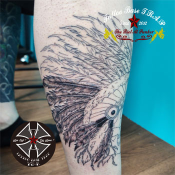 男性の足に《インディアンスカルのタトゥー》