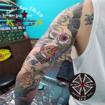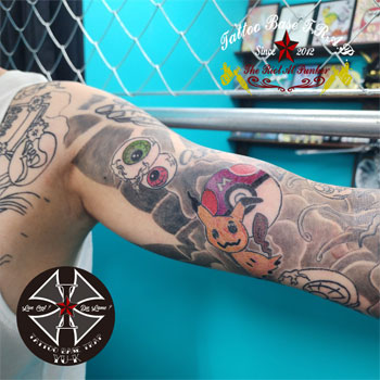 スタッフのRINの腕に《キャラクターのタトゥー》