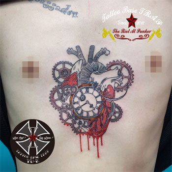 心臓と懐中時計が絡んでるイメージのタトゥー🎶