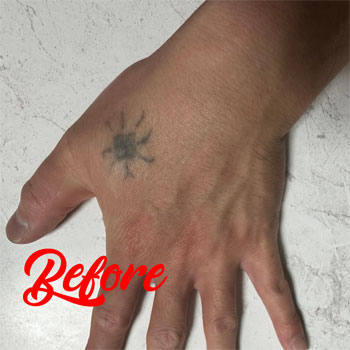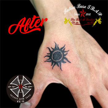 続いて男性の手の甲に《太陽のタトゥー》