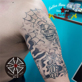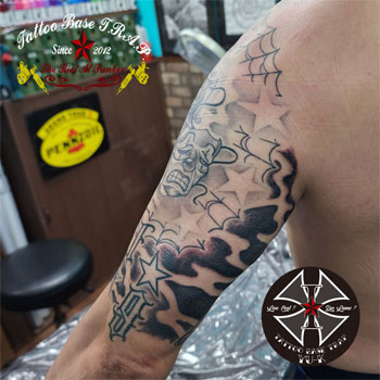 既存タトゥーの周りをモヤモヤっとした感じの背景で埋めました💪