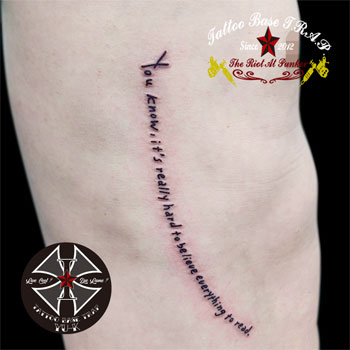 縦長のレタリングなんですが、脇下からヘソの方に向かって少しアーチがかった感じにON💡