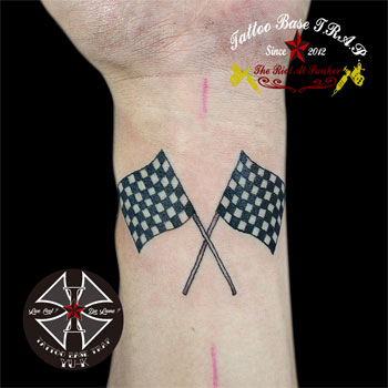 ファーストタトゥーでチェッカーフラッグを彫らせて頂きました🏁