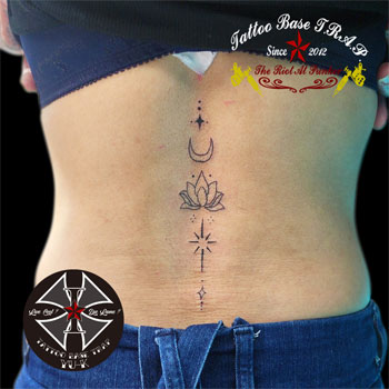蓮、月を合わせた模様的なタトゥーをON👍