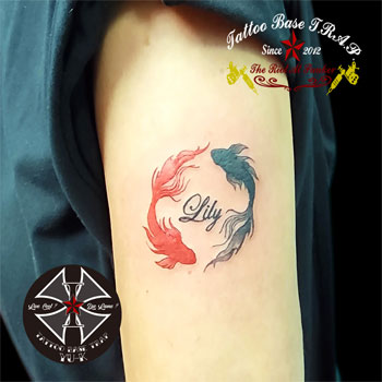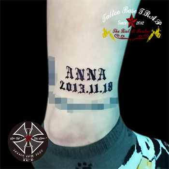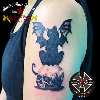 続いて女性の腕に《コウモリな猫&ドクロタトゥー》