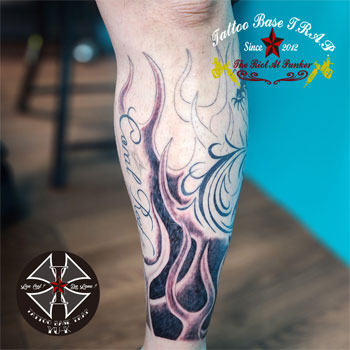 続いて男性の足に《ファイヤーパターンのタトゥー》