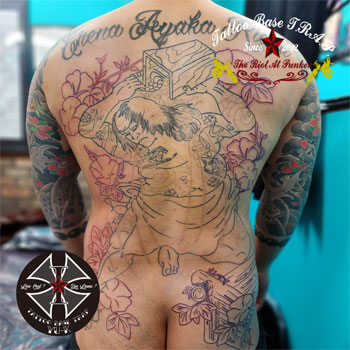 続いて男性の背中に《団七九郎兵衛の刺青》