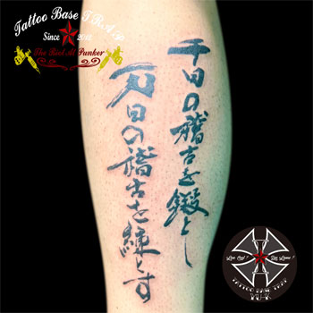 続いて男性のふくらはぎに《漢字の刺青》