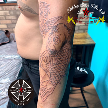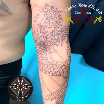 続いて男性の腕に《登龍門の刺青》