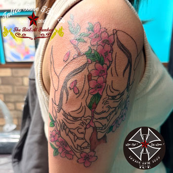 女性の腕に《般若の刺青》