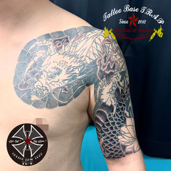 続いて男性の腕に《龍の刺青》