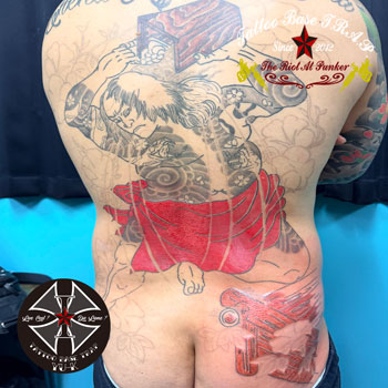 続いて男性の背中に《団七九郎兵衛の刺青》